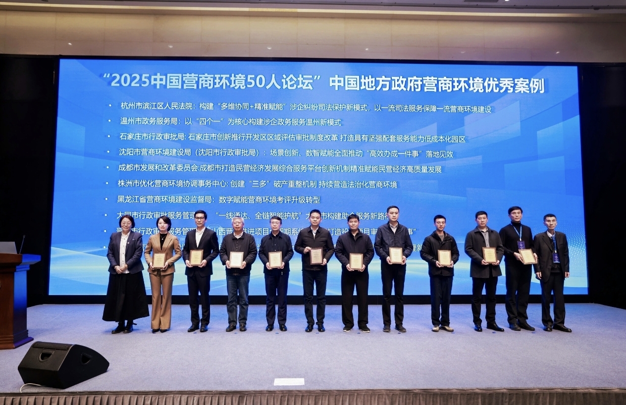 石家庄日报讯 (记者 张静雯 通讯员 刘庆荣) 12月11日至13日,“2025中国营商环境50人论坛”在浙江大学召开。石家庄市报送的“石家庄市创新推行开发区区域评估审批制度改革 打造具有坚强配套服务能力低成本化园区”案例,经两轮专家严格评审,凭借突出的创新性、实效性与示范价值,被评为“中国地方政府营商环境优秀案例”。
