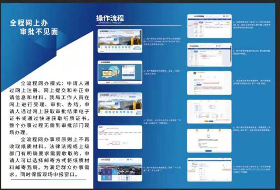 网上所有事项全部实行目录化索引,按类别查找一目了然。点击所选事项下的“在线办理”,即可填报制式电子表单,提交电子信息。工作人员在网上进行受理、审批、办结,并发放电子证书。如果申请人有需要,工作人员也可以通过快递邮寄纸质证书。