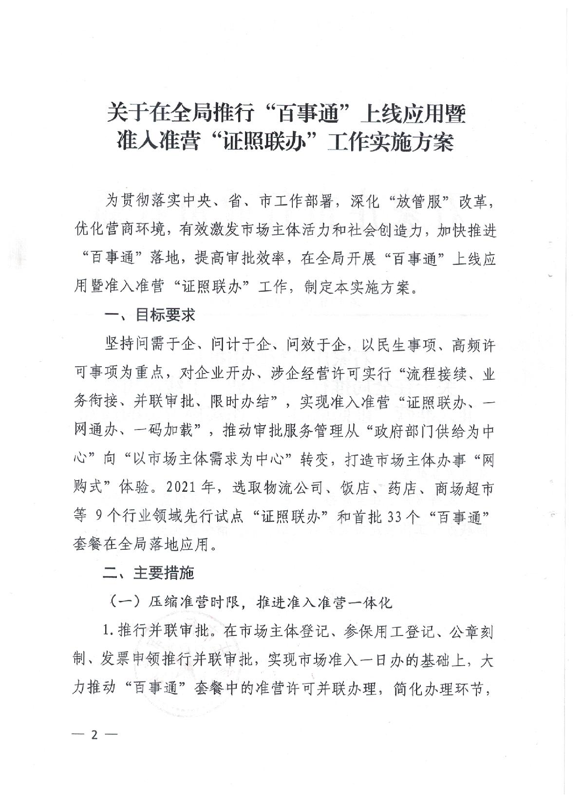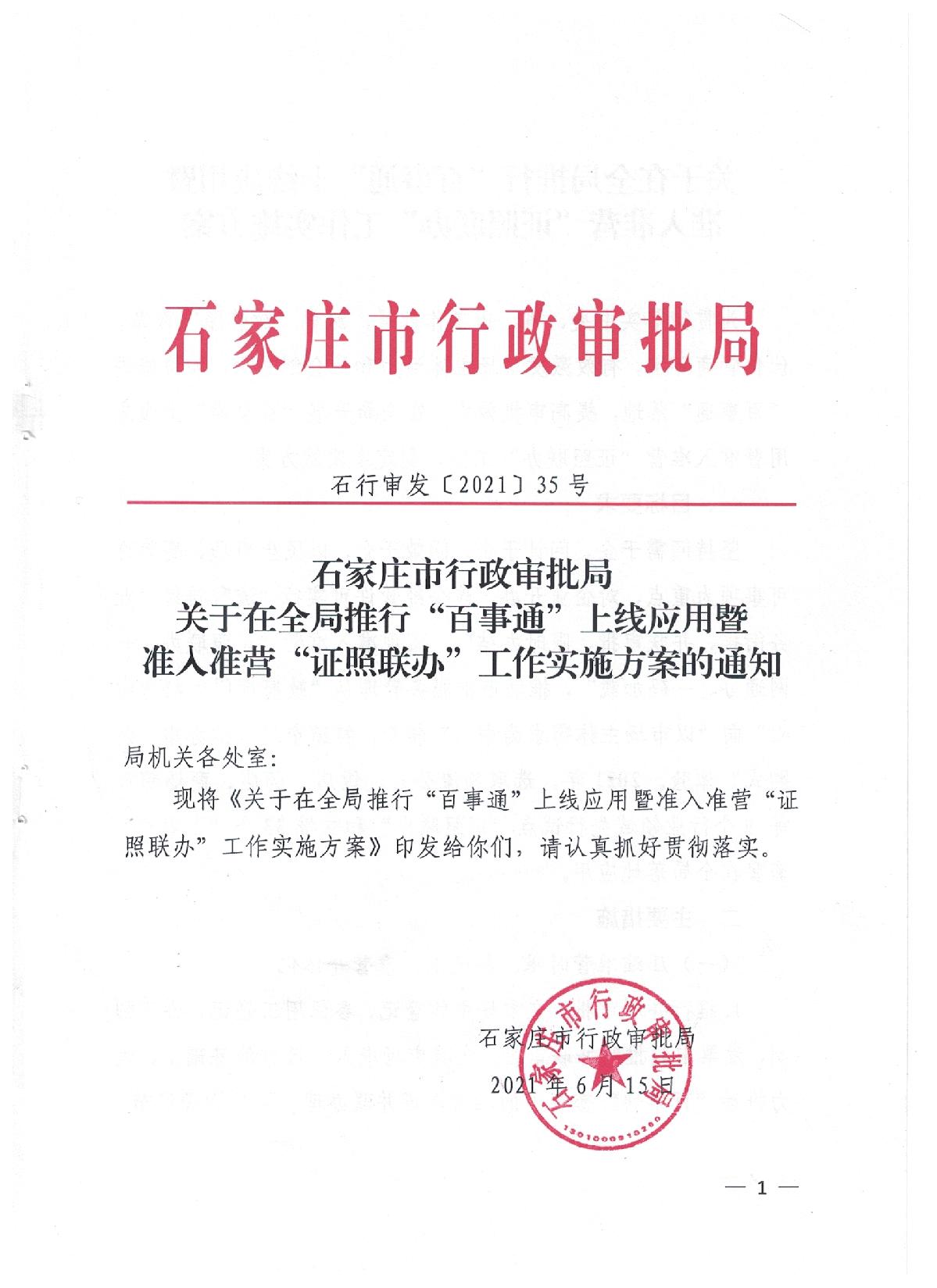 石家庄市行政审批局关于在全局推行“百事通“上线应用暨准人准营“证照联办“工作实施方案的通知